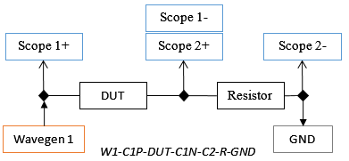 - Order: selects the measurement circuit between: "W1-C1-DUT-C2-R-GND", "W1-C1-R-C2-DUT-GND", W1-C1P-DUT-C1N-C2-R-GND, W1-C1P-R-C1N-C2-DUT-GND (for Analog Discovery 1,2,3), "Adapter".