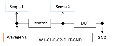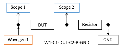 The DUT (Device Under Test) stands for the inductive or capacitive load to be analyzed and Resistor is the reference resistor. The resistor value depends on the load value and frequency.