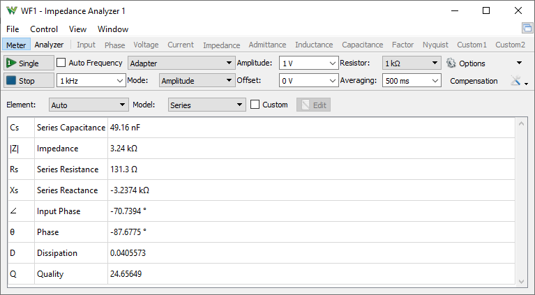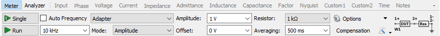 The Impedance Analyzer instrument can be used in Meter and Analyzer modes.