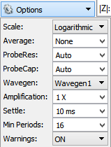 - ProbeRes/ProbeCap: lets you specify the probe resistance and capacitance. Leave Auto option to use device specific values for: Analog Discovery 2 43pF/1.04MΩ, for Analog Discovery 45pF/1.041MΩ, for Electronics Explorer 22pF/1MΩ