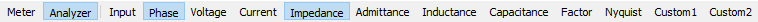 - Impedance: opens/closes the Impedance view showing the Impedance (|Z|), Series Resistance (Rs), and Series Reactance (Xs).