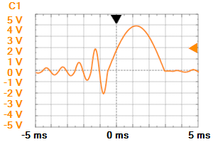 Pulse: If the trigger type is set to Pulse, then the oscilloscope will trigger if a positive/negative pulse has a larger/smaller length than the one already set by the user. For example, if the pulse is smaller than the length set, and the triggering condition is set to more, the oscilloscope will not trigger.