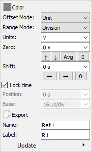- Update: this specifies the time period at which the application will check the oscilloscope device status and read the acquired data in repeated Acquisition Mode. Increase the time to reduce the update rate.