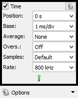 - Rate: adjusts the sample rate. It can be natural divisions of the 100MHz system/ADC frequency, like 50MHz, 33MHz, 25MHz...1Hz, 1mHz
