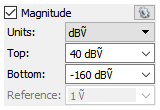 - Scale: Selects between Linear and Logarithmic magnitude scale, available for voltage units.