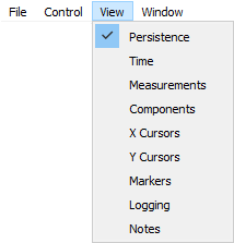 Persistence view superimposes multiple waveform acquisitions on the same view. The more frequent waveforms are drawn with hotter colors than rare ones. The view is cleared by the clear button, after making any configuration change, or restarting repeated acquisition.