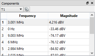 The components view shows the spectral component list for the chosen trace ordered by magnitude. The count parameter sets the number of component to list.