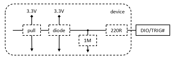 - Common pull option of about 200uA for all DIO and Trigger IO channels is selectable between: pullup, pulldown, keeper or none.