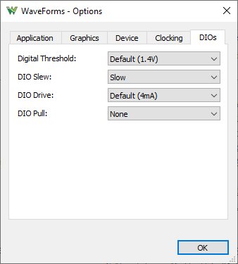 - The drive strength is adjustable in steps 4, 8, 12 and 16 mA; slow or fast slew rate; applied the same for all DIOs and Trigger IOs