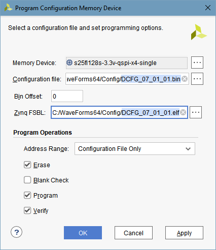 In order to use the Eclypse Z7 and Zmods with WaveForms the following firmware needs to be booted from the SD card or QSPI flash. These are deployed by the WaveForms installer and can be found in the following paths: