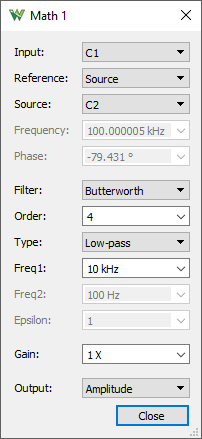 log10(Scope.Channel1.measure("Amplitude",T1,T2)/Scope.Channel2.measure("Amplitude",T1,T2))