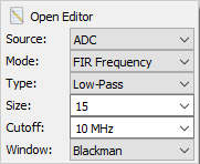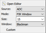 - Record: allows capturing large number of samples at lower rates. In this mode, the samples are streamed through the USB, limiting the rate (depending on the system and other connected devices) at about 1M samples/sec.