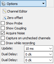 - Acquire Noise: check to acquire scope noise samples, uncheck to speed up acquisition rate.