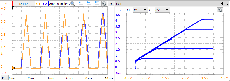 - Scan Shift: similar to the screen mode, but when the signal plot reaches the right corner, the curve plot slides to the left.