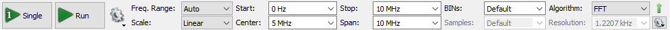 - BINs: Number of frequency bins, selectable from the frequency toolbar.