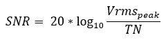 - SNRFS: Signal to noise ratio, expressed in dBFS units, with respect to full-scale.