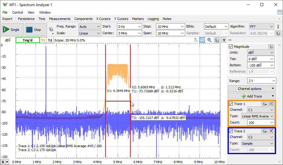 - RMS Average: The trace is updated after the specified count of sweeps with RMS average.
