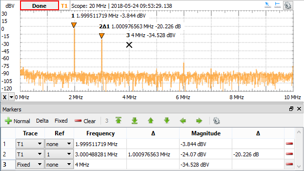 - Delta: Adds a new delta marker. The reference for a delta marker can be selected in the Ref column.