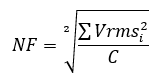 - NF: Noise floor is a root mean square (RMS) of all the bins except: the DC, fundamental frequency, its harmonics and slopes of these.