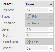 - Update: This specifies the time period at which the application will check the oscilloscope device status and read the acquired data. Increase the time to reduce the update rate.
