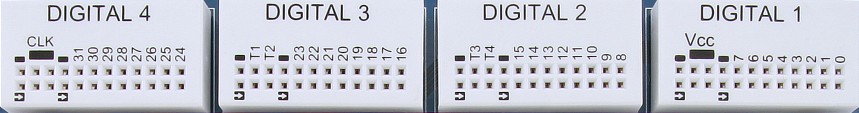 The Electronic Explorer board has 32 digital I/O (DIO 0-31) and 4 trigger I/O pins.