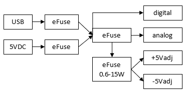 The 4th eFuse for the ±5V supplies is used as master enable switch, to monitor and set the total power limit.