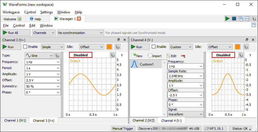 The Analog Discovery 3 is equipped with two Arbitrary Waveform Generators channels.