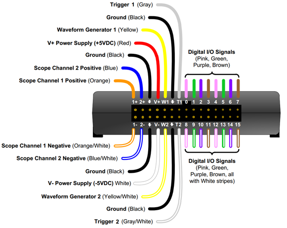 - Remove all the attached components and wires from the Analog Discovery.