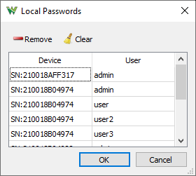 The Local Passwords lets you manage the stored device credentials. These are stored in local user directory with encrypted passwords.
